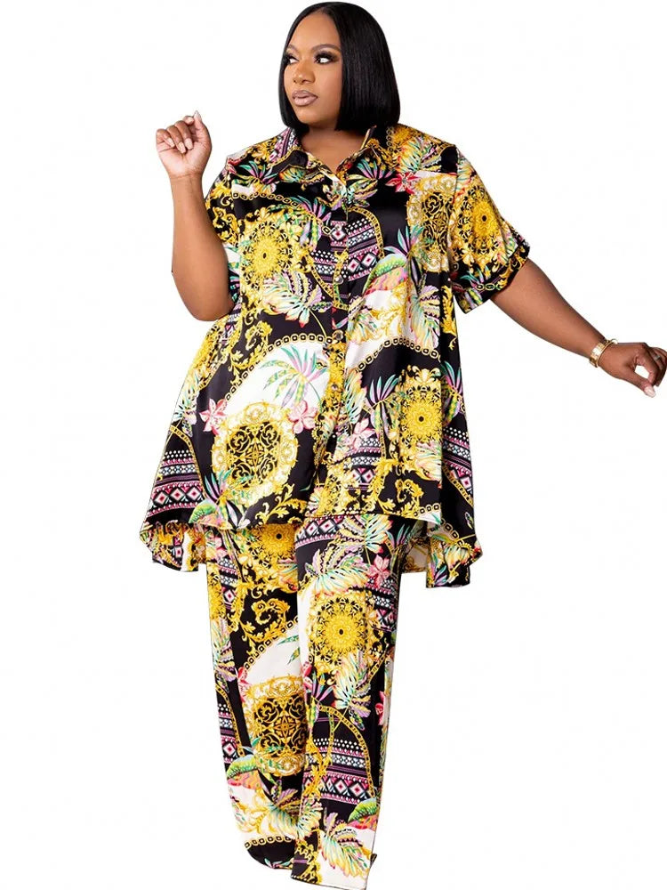 2 Piece Women Set Summer Autumn Short Sleeve Shirt Blouse Top And Pants Suits Outfits Fashion Office Lady Matching Sets Outfit