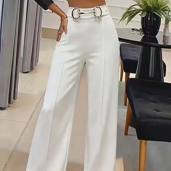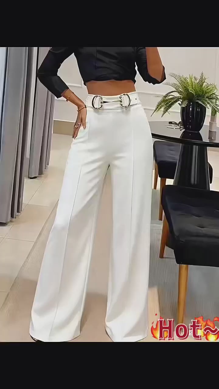 Women High Waist Wide Leg Pants Shiny Fuchsia Straight Pants Long Palazzo Casual Trendy Trousers 2026 Spring Autumn New